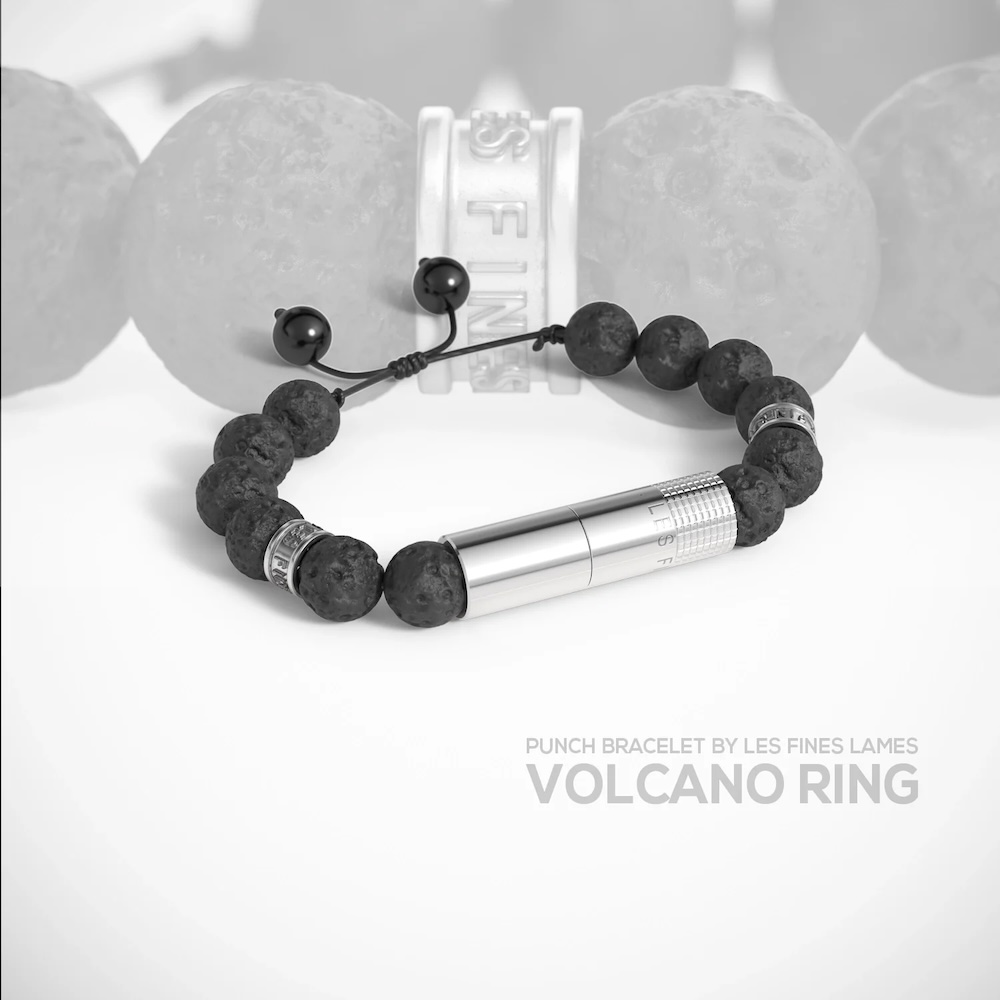 Le Punch Bracelet Volcano Ring des Fines Lames est un emporte-pièce affuté caché dans un bracelet ajustable en perles.